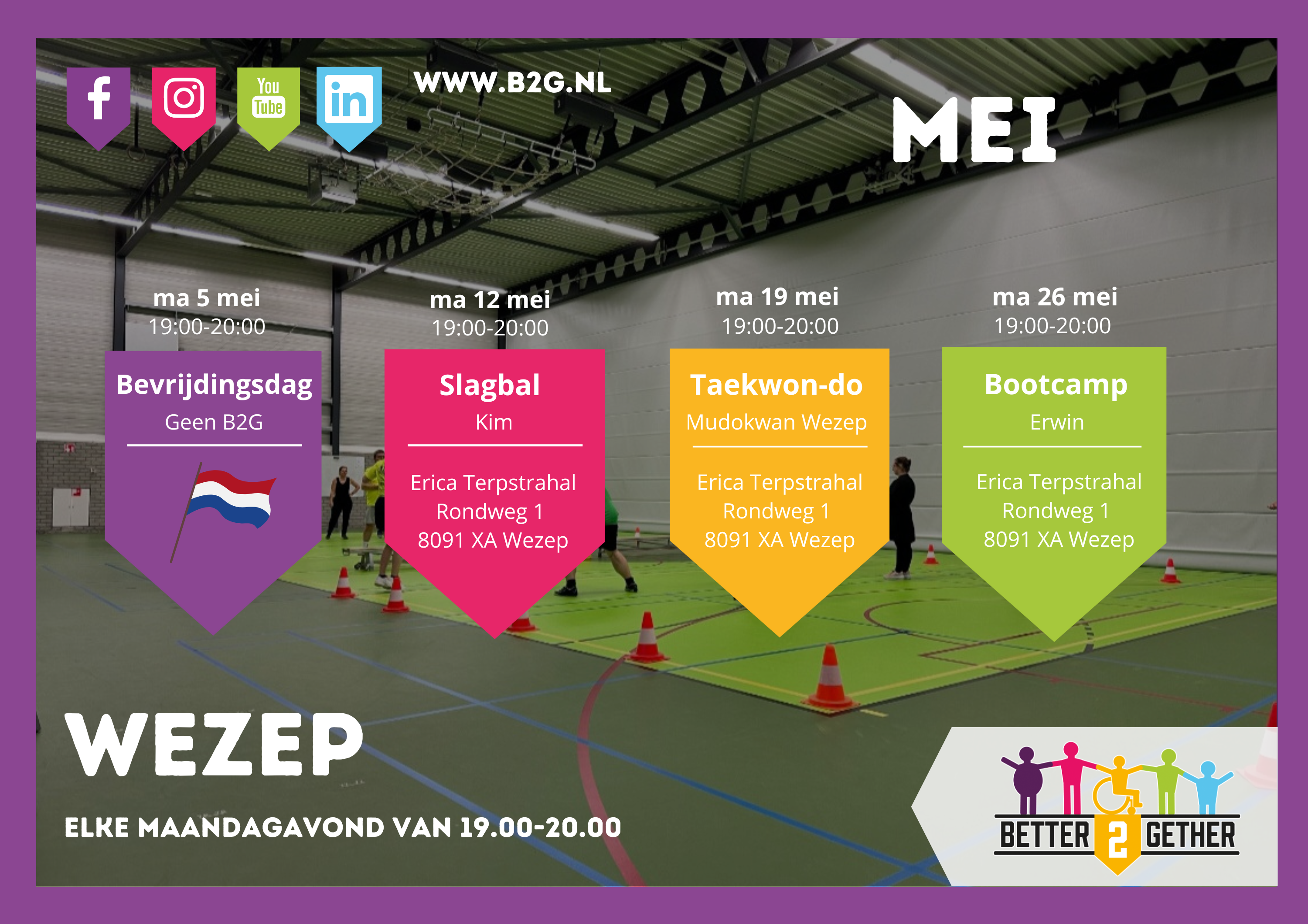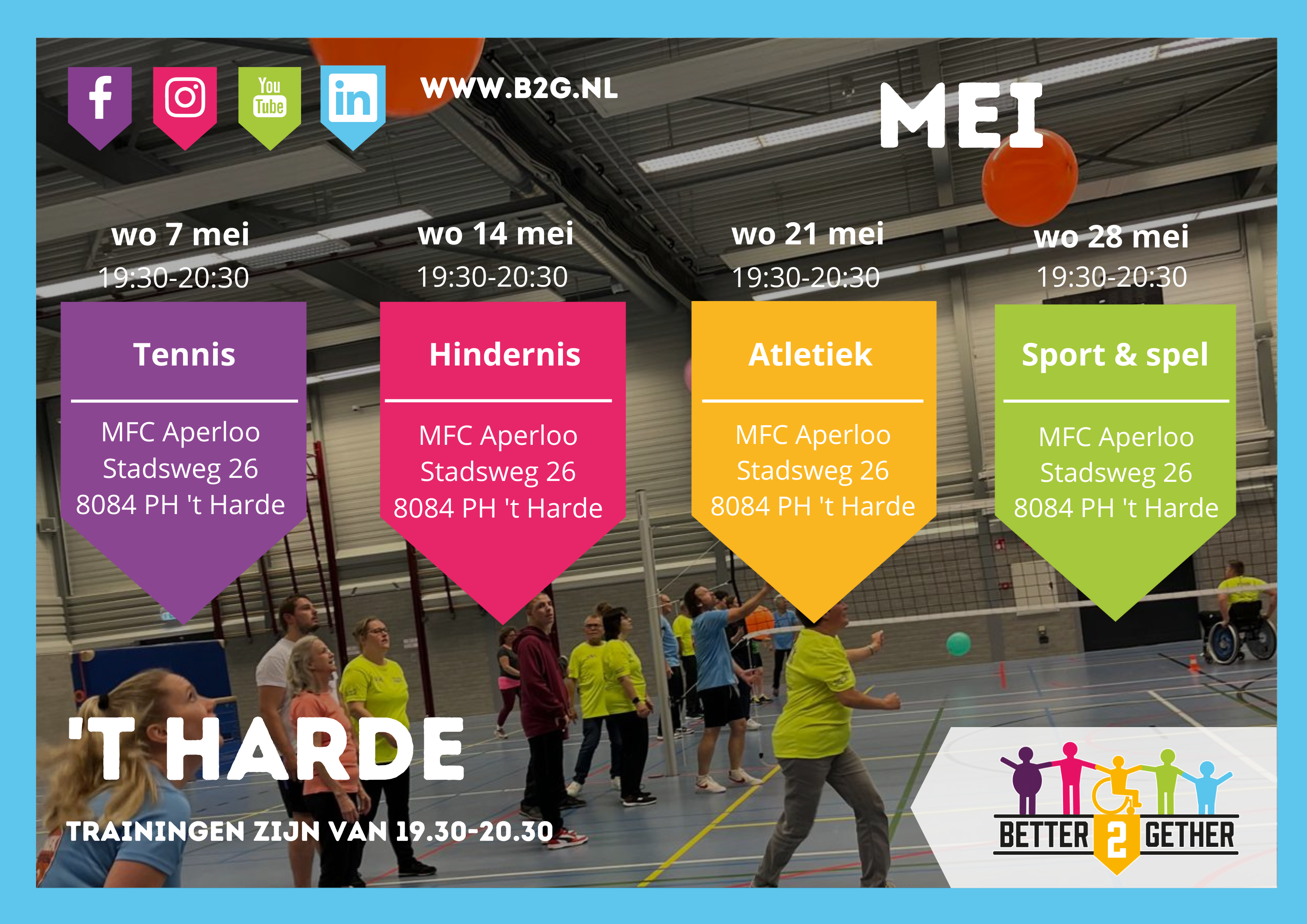 Lijkt het jou ook leuk om mee te gaan sporten? Kom dan snel een keer kijken in Elburg/’t Harde, Nunspeet of Wezep. Hopelijk tot snel!